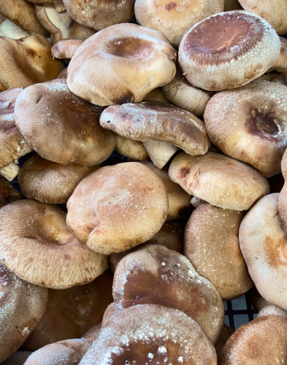Unsere Speisepilze züchten wir auf heimischen Laubholz, meist Buche und Eiche, welche nach dem Ablagern zu Spänen verarbeitet werden. Unter bestimmten Klimabedingungen wird nun das Pilzmycel für einige Monate vermehrt. Nach dieser Durchwachsphase werden die Substratblöcke in Ernteräume gestellt und die Pilze wachsen unter geregelten Temperatur-, Feuchtigkeits- und Lichtverhältnissen aus dem Holzsubstrat.